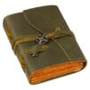 Capture your thoughts and memories in style with this exquisite handmade leather journal. Crafted from genuine leather, it emanates an authentic vintage charm, perfect for those who appreciate the finer things in life. The premium antique key design string closure adds a touch of sophistication, ensuring your journal stays securely closed when not in use. Inside, you’ll find 200 brown handmade pages, providing ample space for your creative expressions, sketches, notes, and musings. Whether you’re a writer, artist, or simply someone who enjoys the tactile experience of putting pen to paper, this journal is sure to become your cherished companion. Give the gift of inspiration to yourself or a loved one with this timeless piece that celebrates the art of handwritten expression