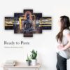 Buddha Set of Five 3D Framed Paintings for Wall Decoration – Ideal for Home, Living Room, and Bedroom (125 x 60 CM)
