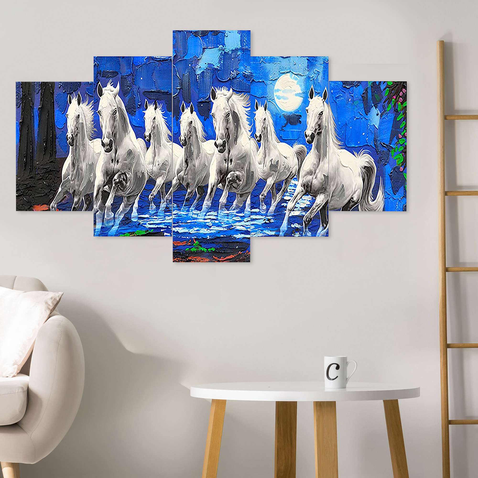 Horse Set of Five 3D Framed Paintings for Wall Decoration – Ideal for Home, Living Room, and Bedroom (125 x 60 CM)
