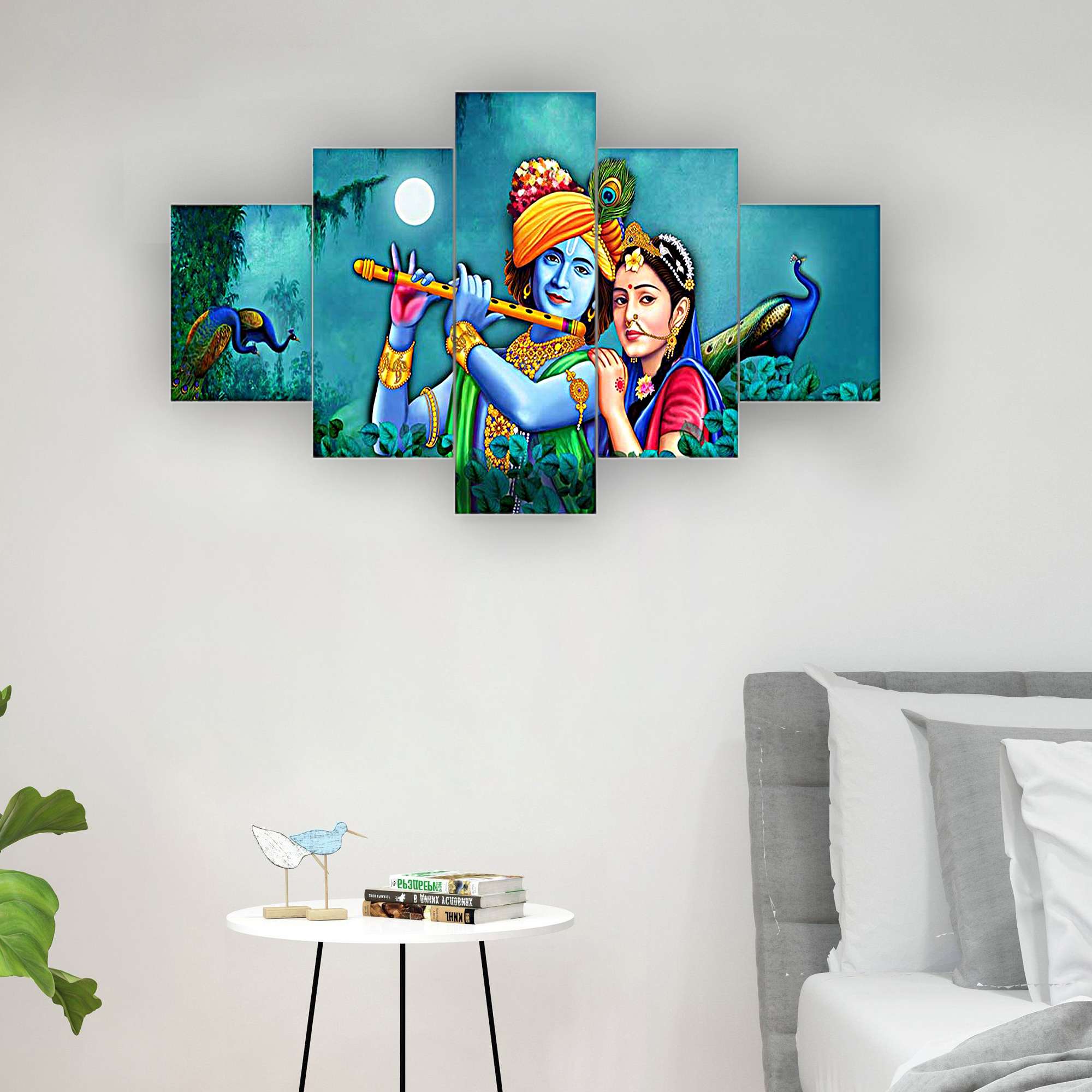Radhe Krishna Set of Five 3D Framed Paintings for Wall Decoration – Ideal for Home, Living Room, and Bedroom (125 x 60 CM)